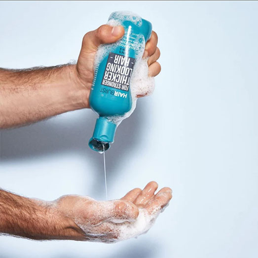 ابتدا مقداری از شامپو و کاندیشنر مردانه هیربرست را بر روی موی خود بریزید.