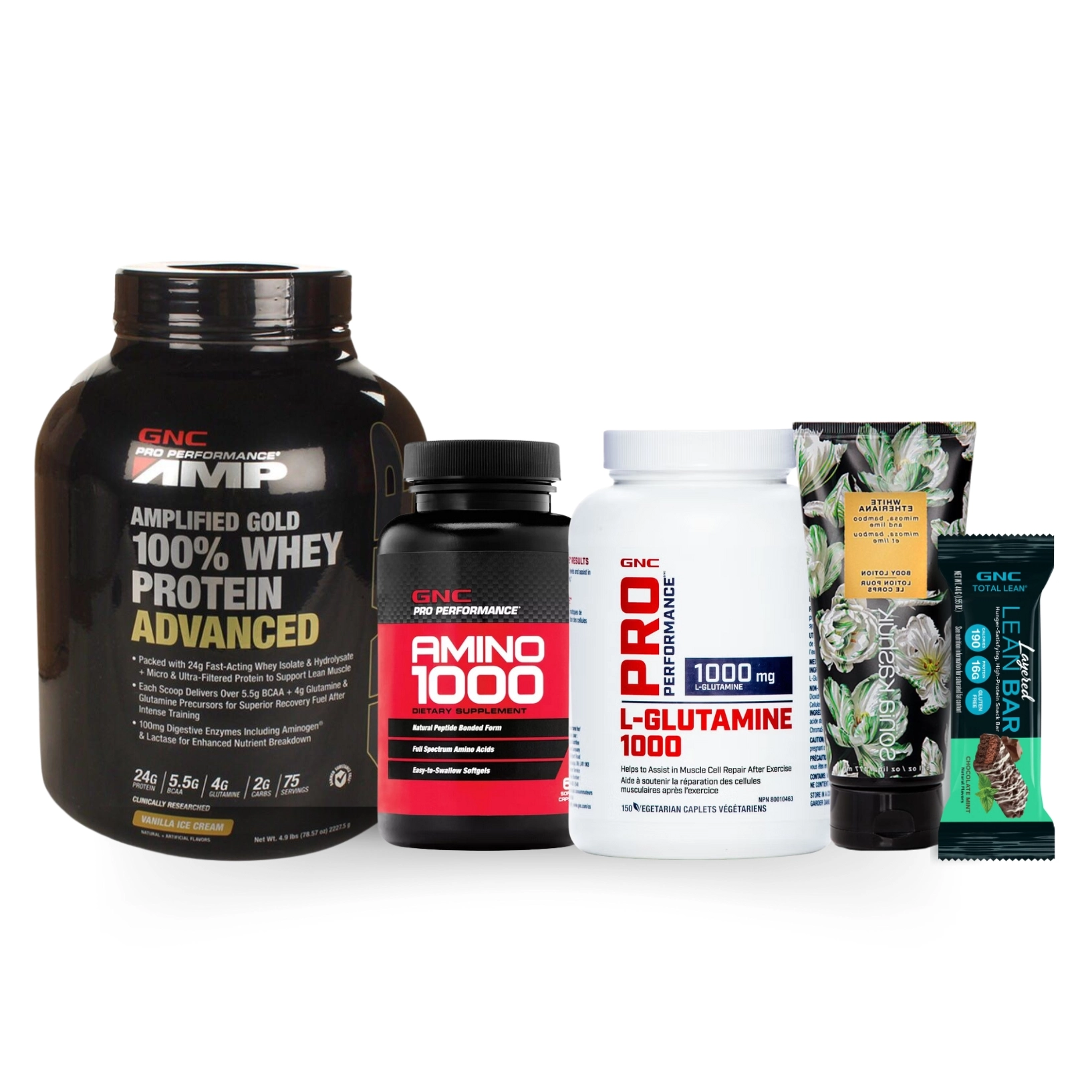 پکیج اقتصادی شماره ۵ جی ان سی ترکیبی از مکملهای پروتئینی، آمینو اسید و گلوتامین برای بهبود عملکرد ورزشی و ریکاوری است. این پکیج شامل محصولات زیر میباشد: