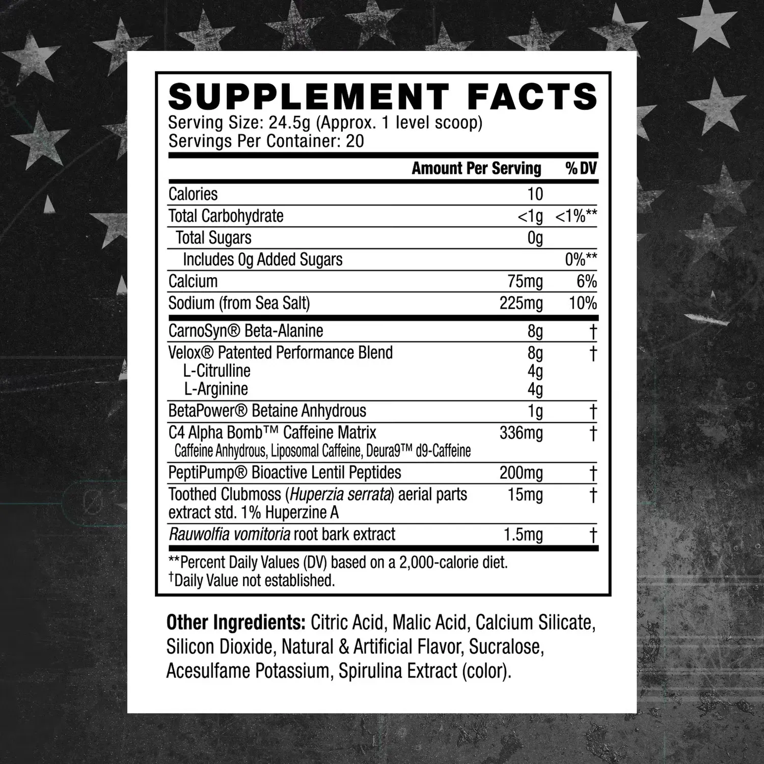 پری‌ورک‌اوت C4 Alpha Bomb از برند Cellucor یک محرک فوق‌قدرتمند است که با ترکیبات پیشرفته‌ای مانند Deura9 کافئین، CarnoSyn بتا آلانین و VELOX، انرژی طولانی‌مدت، پمپ قوی و استقامت بیشتر را فراهم می‌کند. این محصول برای افرادی مناسب است که تمرینات سنگین انجام می‌دهند و می‌خواهند توان خروجی، تمرکز ذهنی و حجم تمرینات خود را به حداکثر برسانند. اگر به دنبال یک پمپ حرفه‌ای با اثر سریع و ماندگار هستید، Alpha Bomb انتخاب ایده‌آل شماست.