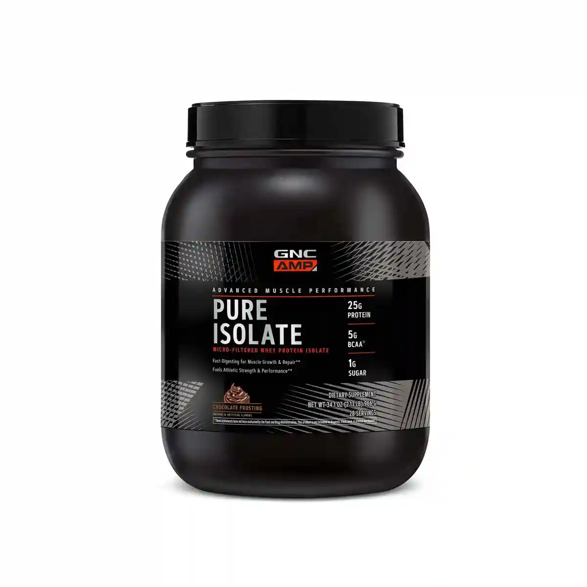 GNC AMP Pure Isolate Protein با طعم کیک گدازه شکلاتی، ایزوله پروتئین آب پنیر میکرو فیلتر شده است که در هر وعده 25 گرم پروتئین، 5 گرم BCAA و 1 گرم شکر ارائه میدهد. این مکمل با جذب سریع، به رشد و ترمیم عضلات کمک میکند و فاقد گلوتن و مواد ممنوعه است. مناسب ورزشکاران، بدنسازان و افرادی است که به دنبال افزایش قدرت و بهبود ریکاوری عضلات هستند.