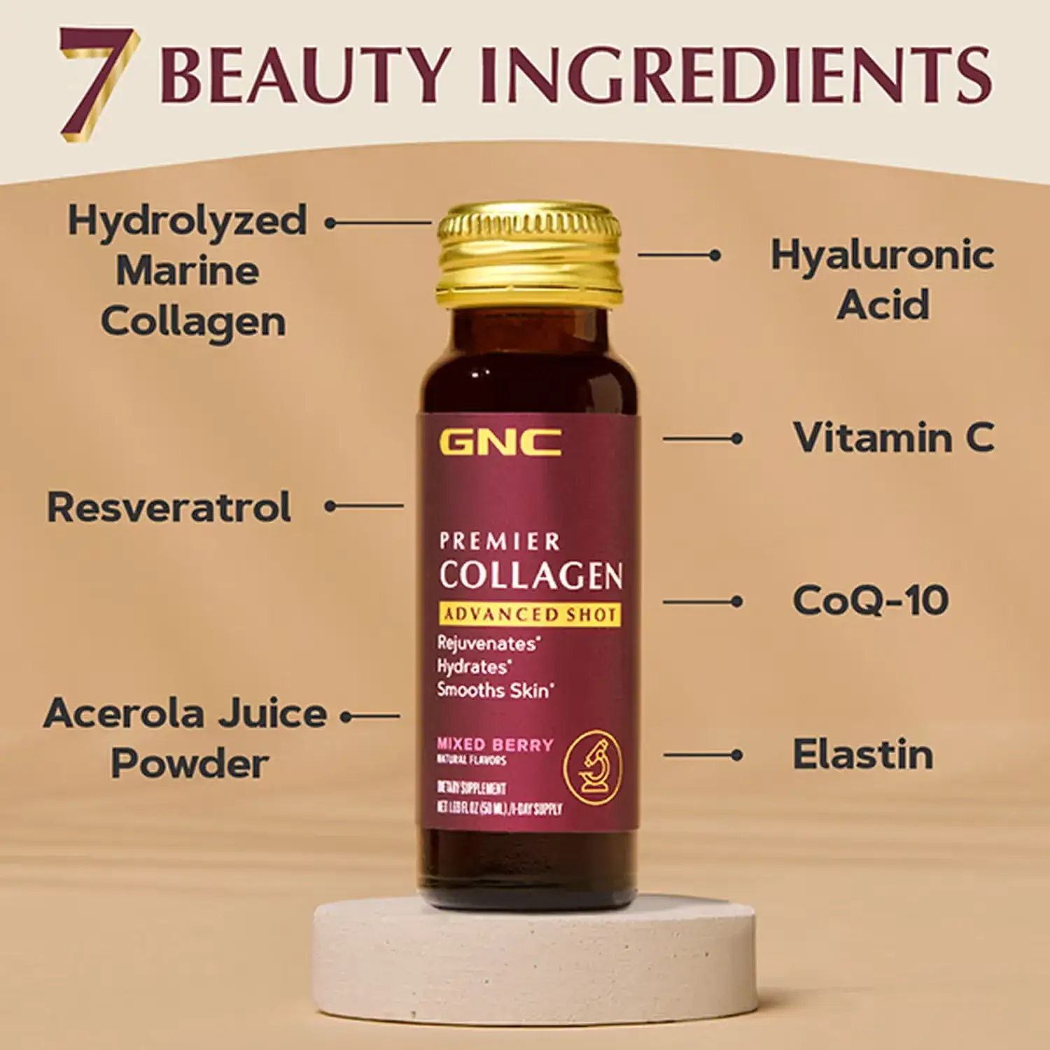 ویژگی های شات کلاژن مایع GNC Premier Collagen Shot