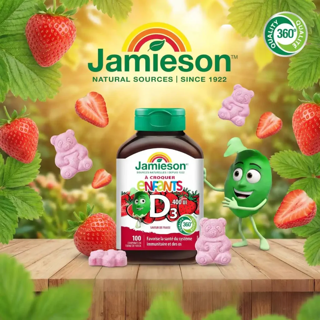 ویتامین D3 جویدنی کودکان جیمیسون با طعم توت فرنگی یک مکمل خوشمزه و موثر برای تأمین نیاز روزانه کودک به ویتامین D است. این محصول به تقویت استخوانها و دندانها، حمایت از سیستم ایمنی و رشد سالم کودکان کمک میکند.