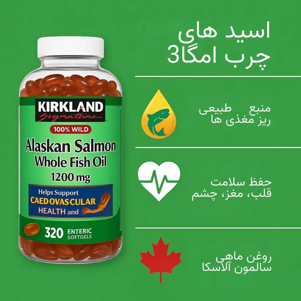 روغن ماهی آلاسکا وحشی کرکلند (امگا۳) | Kirkland Signature 100% Wild Alaskan Salmon Whole Fish Oil