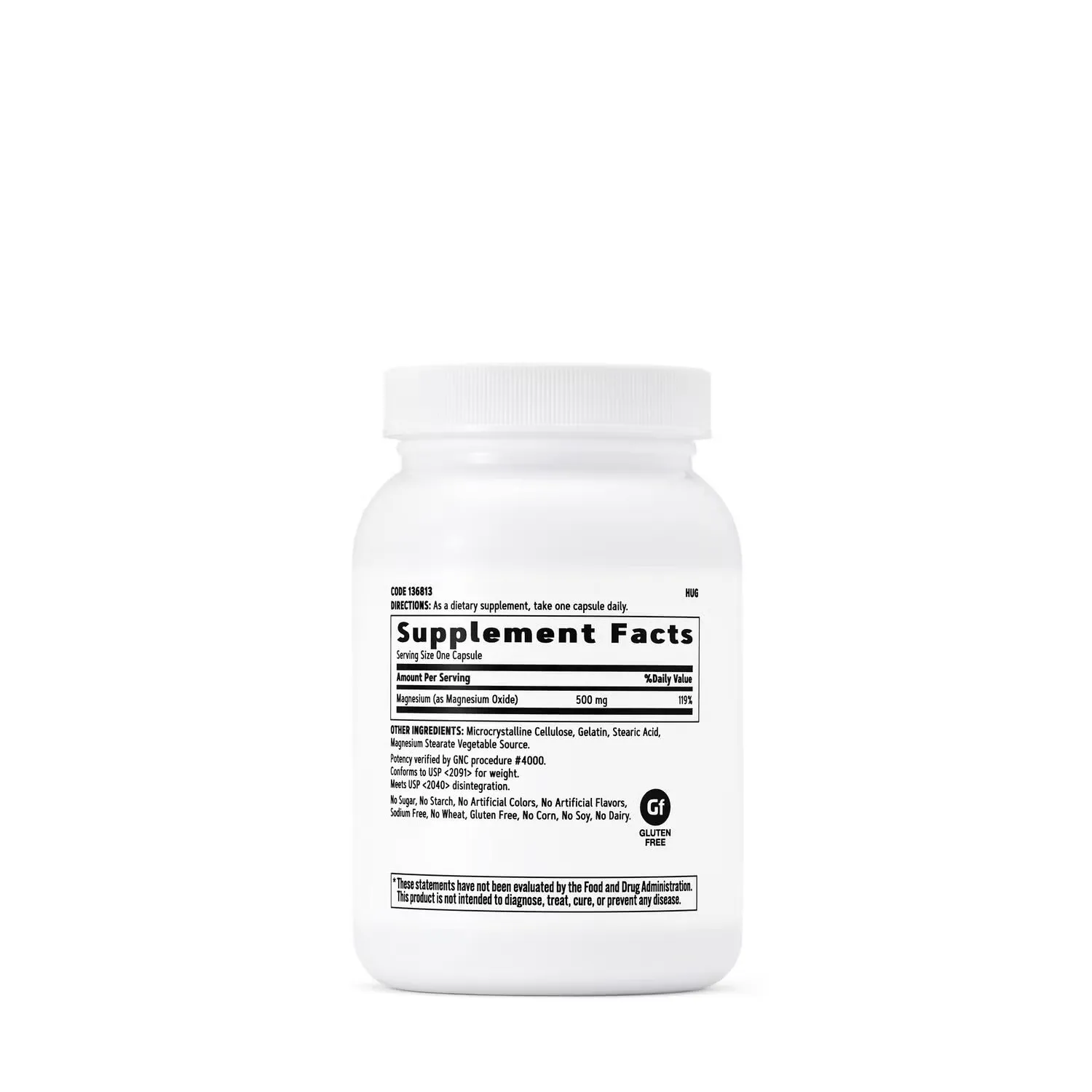 | منیزیم (به عنوان اکسید منیزیم) | ۵۰۰ میلی گرم | ۱۱۹% | |