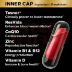 افزایش تستوسترون: این مکمل دارای ۴۰۰ میلیگرم Tesnor® است که به افزایش تستوسترون آزاد و کل کمک میکند.