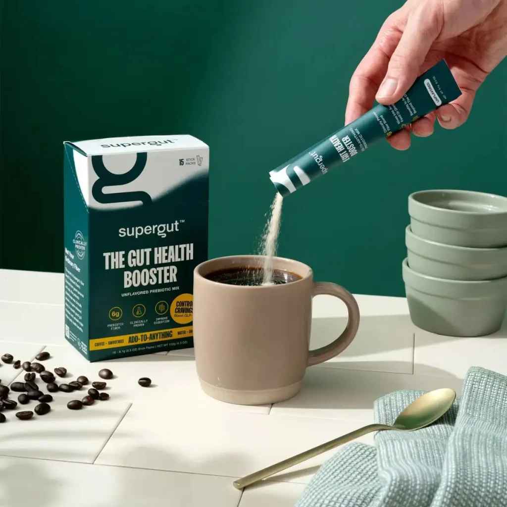 Supergut GLP-1 Booster یک پودر پیش‌بیوتیک بدون طعم است که تنها با اضافه شدن به نوشیدنی یا غذای روزانه، سلامت روده را تقویت کرده و به بهبود هضم، کنترل قند خون و کاهش ولع غذایی کمک می‌کند. ترکیب این محصول از فیبر مقاوم استخراج‌شده از موز سبز و جو دوسر ساخته شده و به‌طور طبیعی باعث افزایش GLP-1، بهبود انرژی و مدیریت وزن می‌شود.