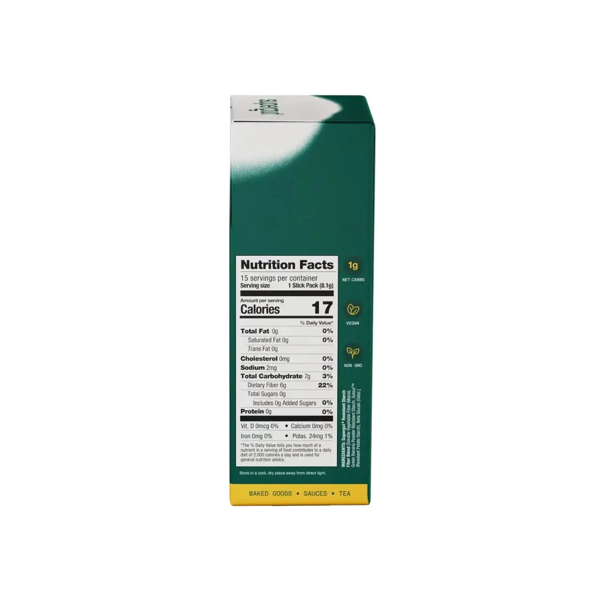 • دارای ۶ گرم فیبر پیش‌بیوتیک مقاوم در هر ساشه