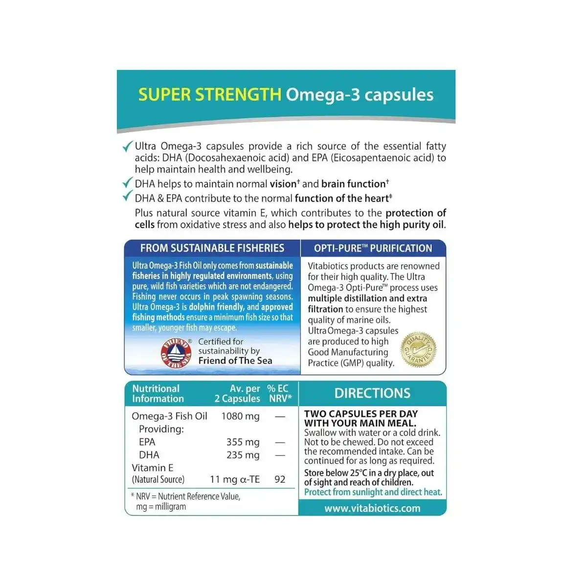 کپسولهای Ultra Omega-3 از برند معتبر ویتامین شمارهٔ ۱ بریتانیا، با استانداردهای کیفی بسیار بالا و از منابع دریایی پایدار تولید شدهاند. این مکمل با بهرهگیری از DHA و EPA با خلوص بالا، از سلامت عمومی بدن پشتیبانی کرده و نقش مهمی در حفظ عملکرد طبیعی قلب، مغز و بینایی ایفا میکند.
